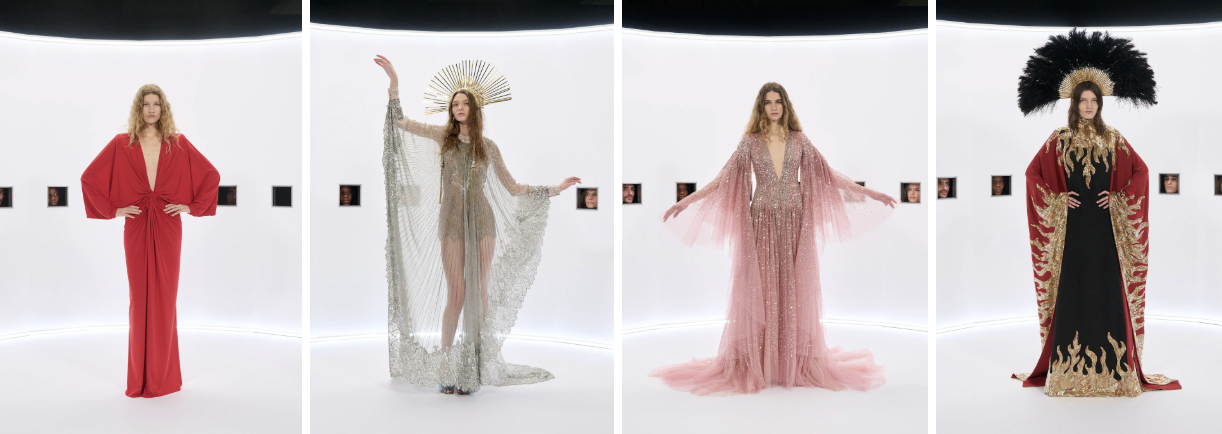 Recently, in his Spring 2026 Couture, Michele unveiled a series of circular “kaiserpanorama” viewing rooms that forced spectators to slow down and look. The inspiration for the collection drew on multiple eras, from 1910s silhouettes to 1980s drama. There were velvet trapunto suits, creamy satin slips, embroidered capes, flame-kissed sequins, and elaborate feather headdresses, with moments of Valentino Red anchoring look after look. The result was not just a pastiche but a tapestry of moods that felt both intimate and theatrical.