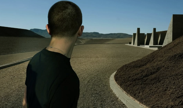 The image of Chalamet accompanies a set by Annie Leibovitz, taken in the Nevada art installation The City, created by Michael Heizer. Of the many photos taken for the shoot, there were countless viable options for the cover: images capturing a brooding Chalamet leaning on a bike, gazing fervently out into the desert; flying through the sky, arms outstretched. His styling drastically changes from the front cover to the photographs within the magazine, going from the bright, floral Celine design to a grungy, tougher aesthetic embodied in a Tom Ford leatherwork jacket. The unaligned styling of the rest of the shoot only further overthrows any sense of coherence or clear messaging of the issue.