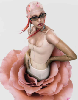 Accordingly, the image campaigns show FKA twigs seemingly growing out of flowers, merging with floral motifs, or models presented intertwined with flowers and plants.